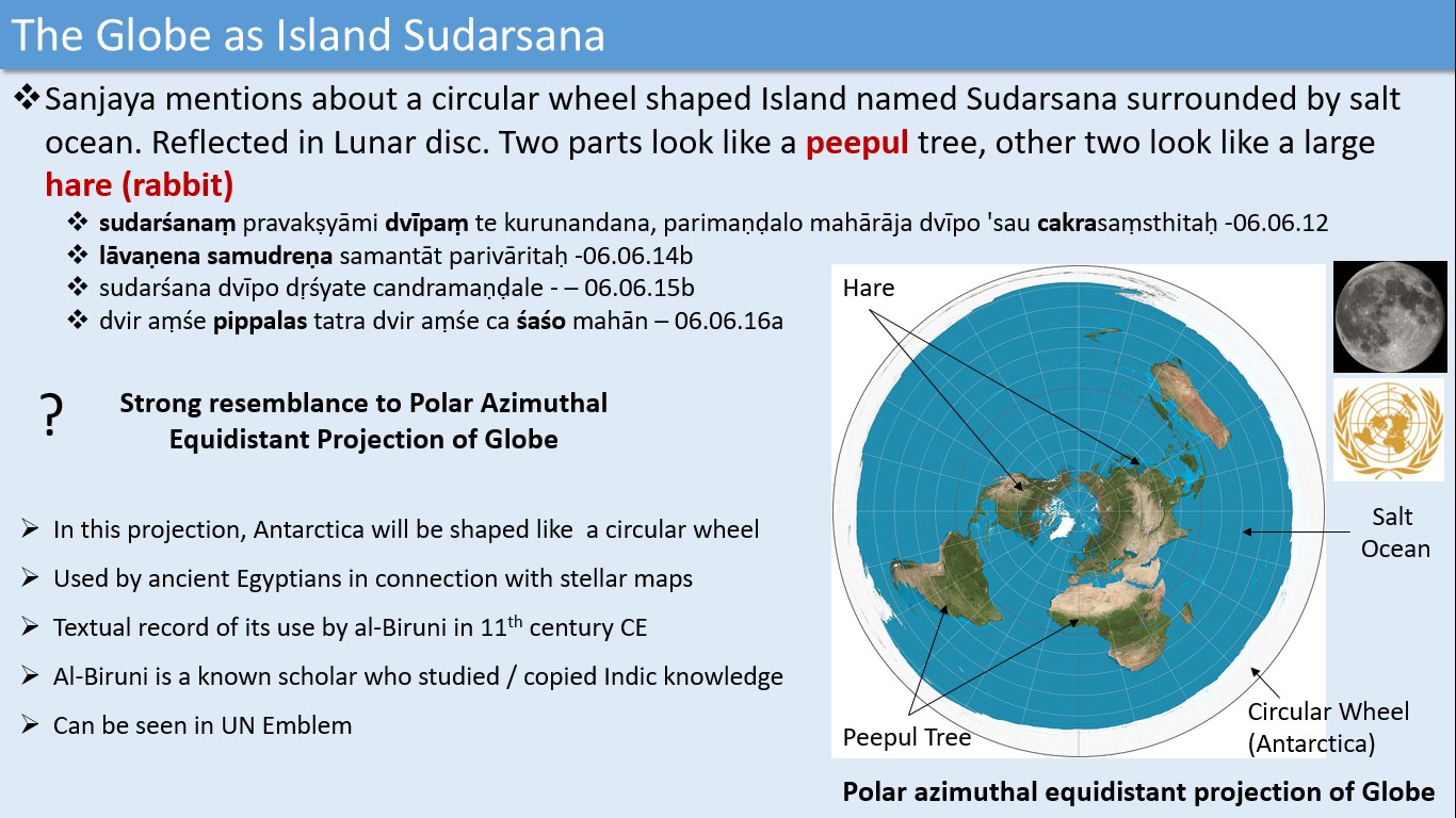 Figure 6: Circular wheel shaped Island named Sudarśana, with strong resemblance to the Polar Azimuthal Equidistant Projection of Globe