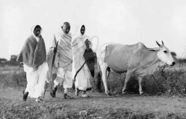 MKG33394 Mahatma Gandhi walking at Sevagram Ashram Vardha Wardha Maharashtra India 1934