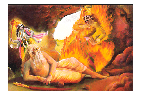 मुचकुन्द की आँखों की ज्वाला से कालयवन का जलना [श्रेय: Bhaktivedanta Book Trust]